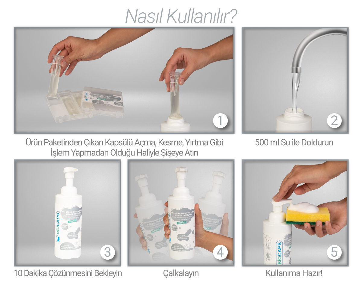 Hazır köpük formuyla elde yıkama bulaşık detarjanı olarak kullanılır. Probiyotik yapısı ile yağ ve kirleri parçalar, etkili ve kalıcı bir temizlik sağlar. Lavabo gideri, sünger ve bezlerinizde zararlı mikroorganizmaların oluşmasını önleyerek kötü kokuya engel olur.